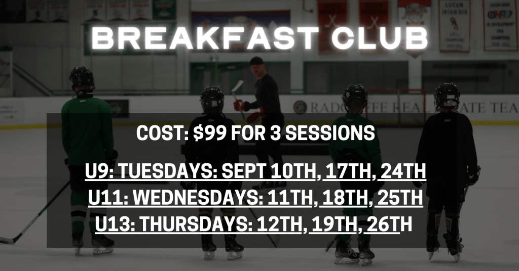 Breakfast Club session begin the second week of September for U9, U11, and U13 players and we’re offering three weekly sessions for only $99. These high-intensity skates will cover both skills, techniques, and tactics required for competitive play in real-game situations. Your skater will exit these sessions with greater confidence (both with and without the puck) and a game-ready attitude.